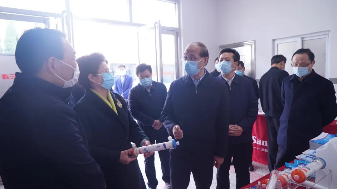 調(diào)研現(xiàn)場 ,省委常委 、副省長吳曉軍首先了解公司的基本情況 ,詢問公司的復工復產(chǎn)情況、產(chǎn)能恢復進度、安全生產(chǎn)等工作 ,公司副董事長 、總經(jīng)理雷鳳蓮一一作了詳細匯報 。當?shù)弥驹谑?、市 、縣(小藍經(jīng)開區(qū))有關部門的幫助和指導下,1月31日就正式啟動透析液 、疫苗注射器等重點產(chǎn)品的復工生產(chǎn) ,3月10日公司獲得一次性使用醫(yī)用口罩二類醫(yī)療器械注冊證,現(xiàn)正在竭盡全力 、滿負荷生產(chǎn)一次性使用醫(yī)用口罩 、酒精棉和84消毒液時 ,省委常委 、副省長吳曉軍叮囑道 ,市場是企業(yè)的生命線 ,企業(yè)要在確保員工安全和產(chǎn)品質量的前提下 ,堅定信心 ,緊抓機遇,進一步加大生產(chǎn)力度 ,全力保障市場供應 ,堅定不移地保市場 、穩(wěn)市場 、拓市場 。